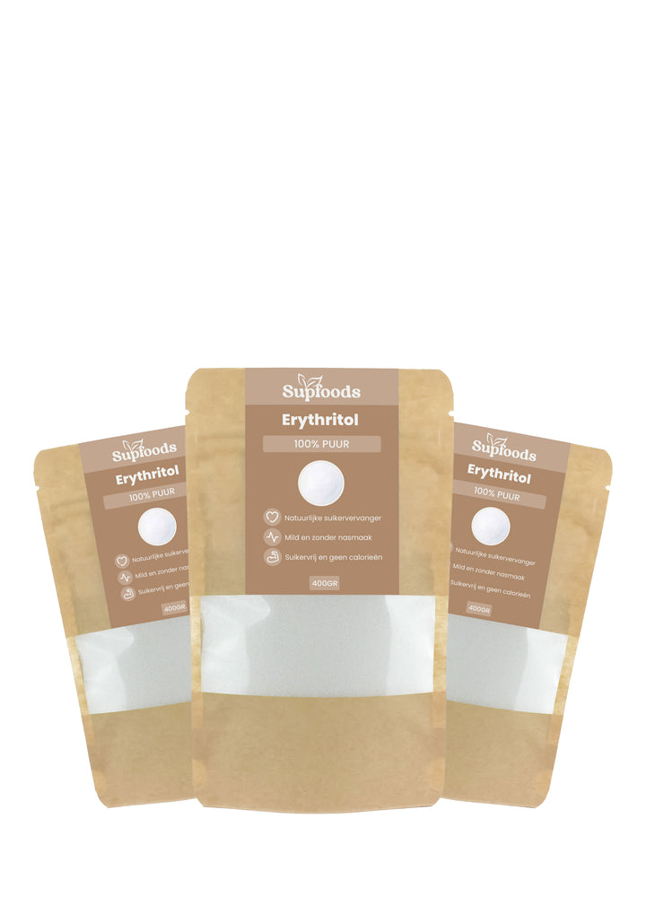 Erythritol is een natuurlijke zoetstof die behoort tot de polyolen (suiralcoholen). Het komt van nature voor in verschillende fruitsoorten en gefermenteerde producten. Het heeft ongeveer 70% van de zoetkracht van gewone tafelsuiker, waardoor het zeer eenvoudig te doseren is. Het is een populaire keuze voor wie op zoek is naar een suikeralternatief.