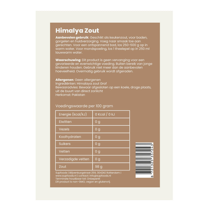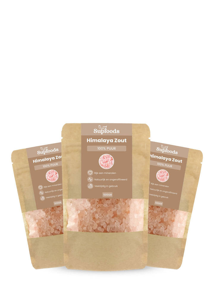 Himalaya zout is miljoenen jaren oud kristalzout dat diep onder de grond is ontstaan door verdamping van oerzeeën. Het wordt gewaardeerd om zijn roze kleur, die afkomstig is van natuurlijke mineralen in de bodem. Het zout is onbewerkt en vrij van additieven.