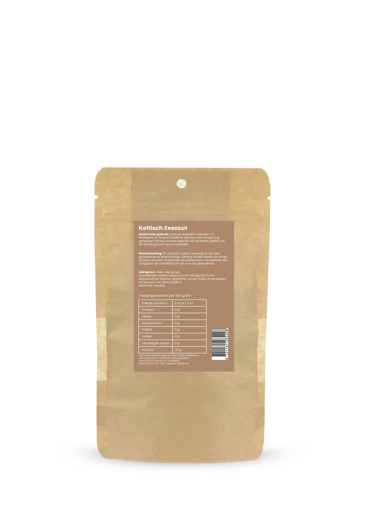 Enkel 100% natuurlijk Keltisch zeezout, zonder toevoegingen. Geen kunstmatige stoffen, alleen de zuiverheid van de zee.