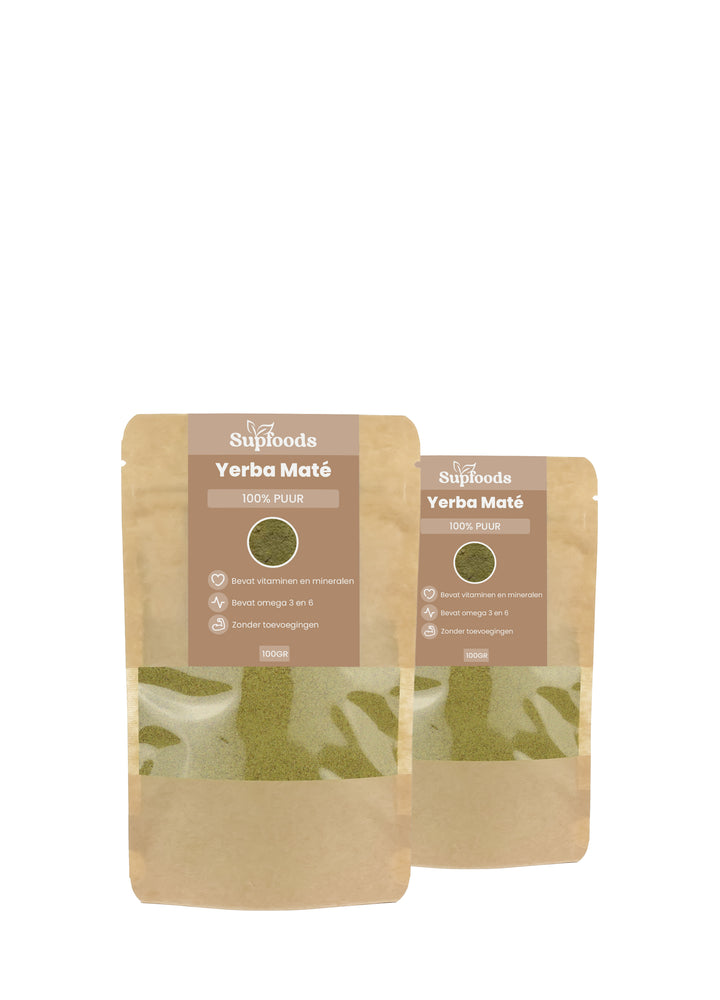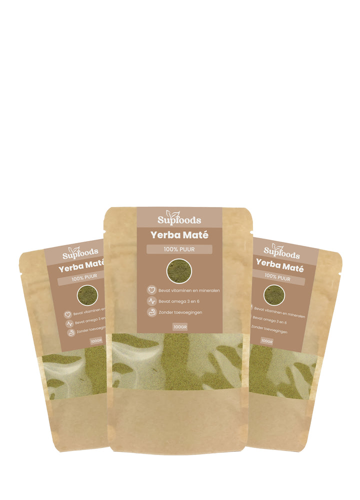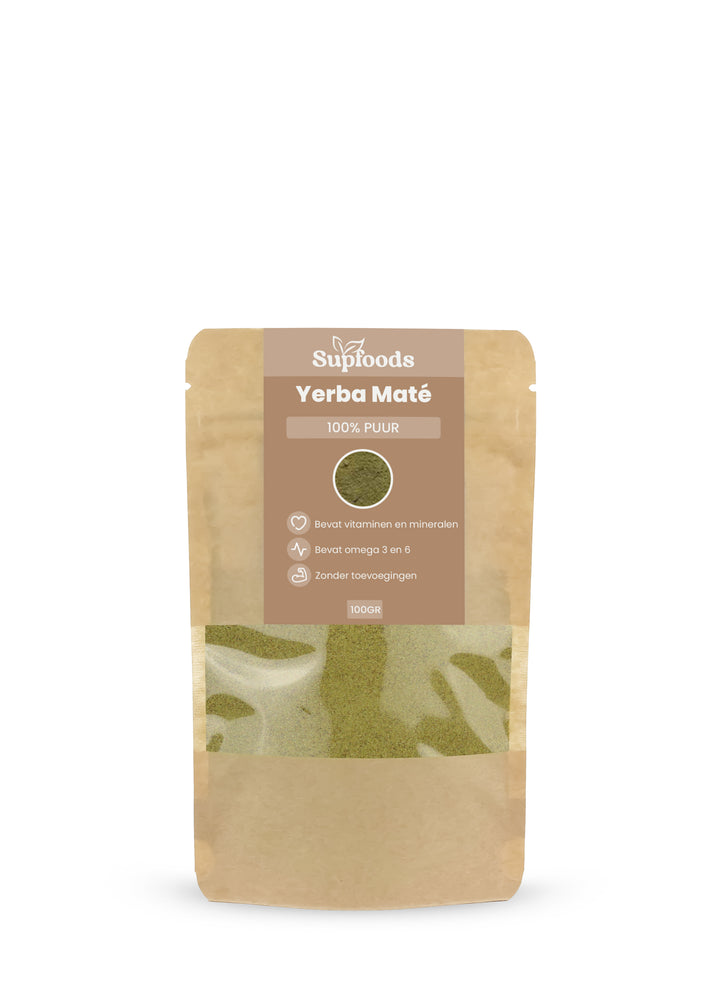 Op zoek naar pure Yerba Maté van hoge kwaliteit? Onze Yerba Maté poeder bestaat voor 100% uit gedroogde en fijngemalen bladeren van de Ilex paraguariensis, zorgvuldig verwerkt voor optimale smaak en kwaliteit. Vrij van additieven, vulstoffen of kunstmatige toevoegingen. Een natuurlijk, energierijk product dat eenvoudig is te verwerken in warme of koude dranken.